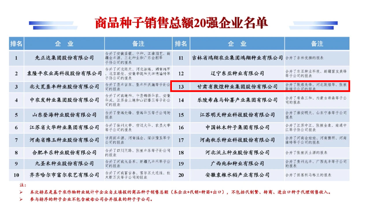 名單發(fā)布!敦煌種業(yè)一公司入選!